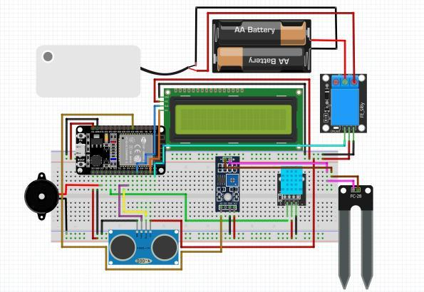 Este proyecto es un sistema inteligente de monitorización de plantas que se ha desarrollado utilizando un microcontrolador ESP32 junto con varios sensores como el DHT11, un sensor ultrasónico, un sensor de humedad del suelo y una aplicación Blynk para monitorizar la salud de las plantas de forma remota (https://github.com/Shishir3D/PlantMonitoringSystem).