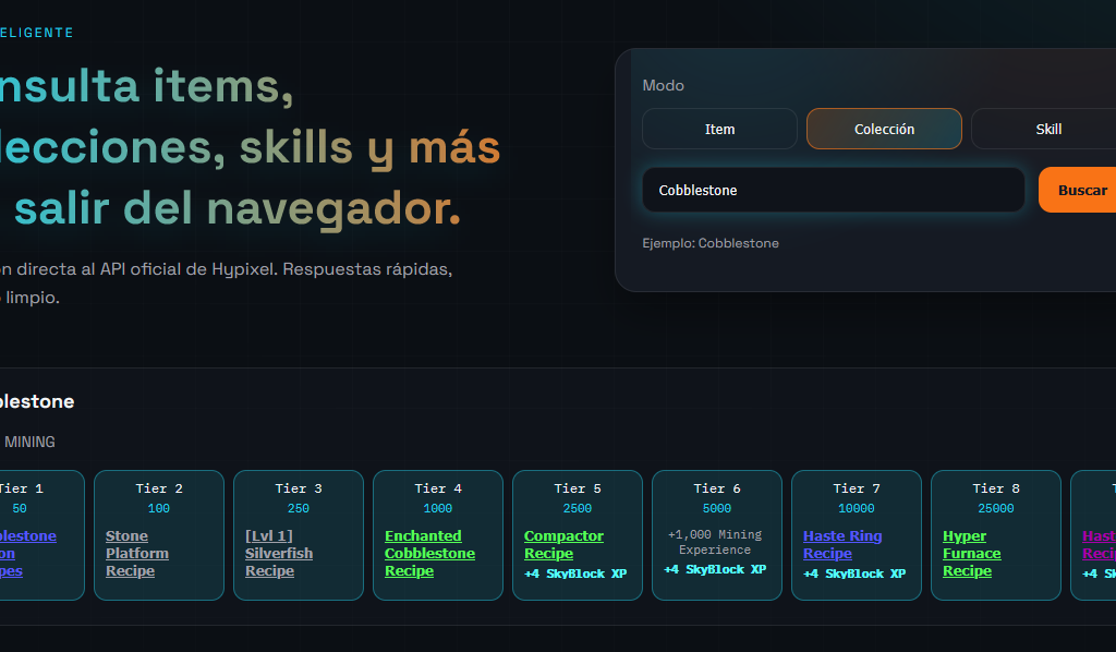 SkyBlockCodexAPI nace de esa fricción, pero también de esa intuición: convertir el caos de conocimiento de SkyBlock en una infraestructura dinámica donde comunidad, datos y modelos de IA no solo documentan lo que pasa, sino que lo entienden, lo actualizan y lo anticipan.