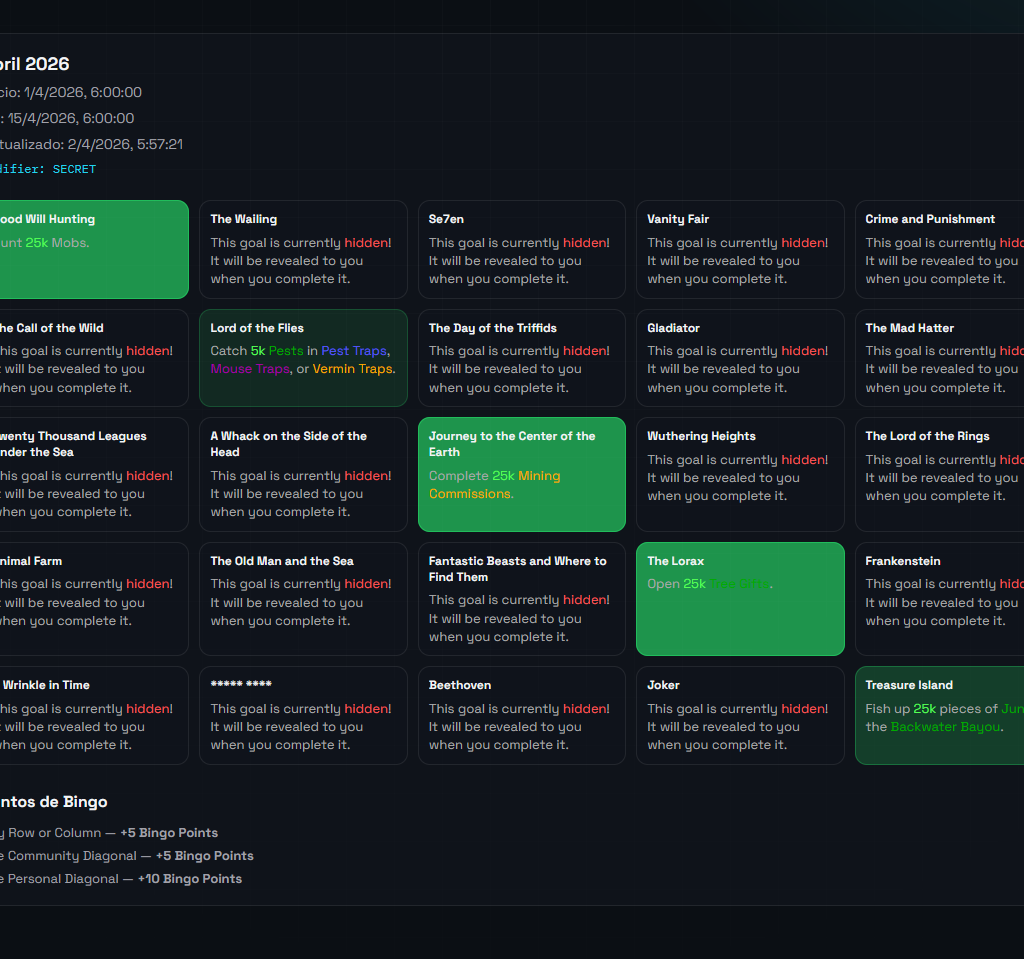 No queríamos listar objetivos en vertical. Eso no se parecía en nada a la experiencia real del juego. Así que lo convertimos en una carta 5×5, visual y navegable.